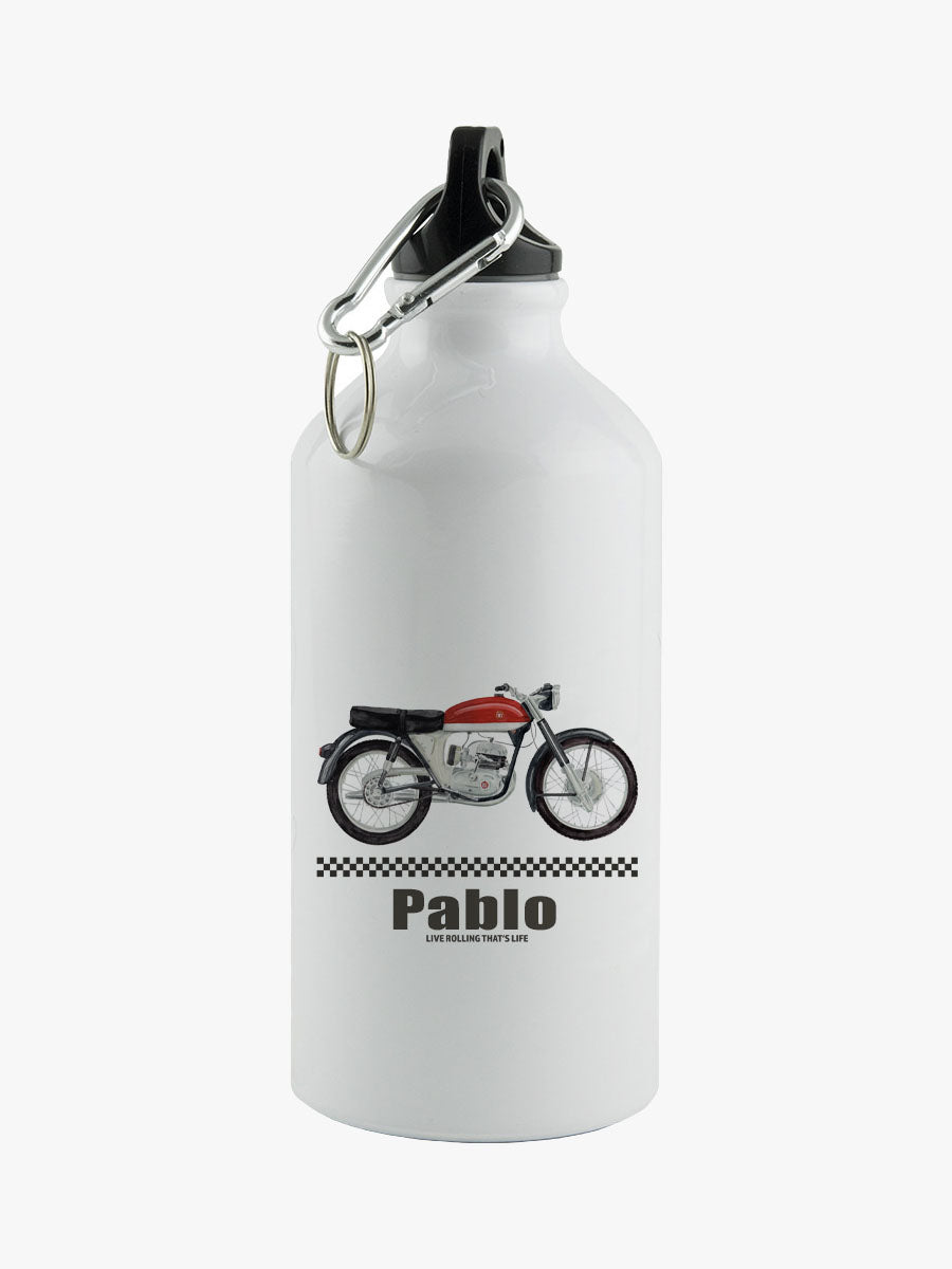 Bidón personalizable con capacidad para 400 ml. Ideal para llevar al colegio, incluye tapón de seguridad con rosca y mosquetón metálico para facilitar su transporte. Presentado en caja individual.