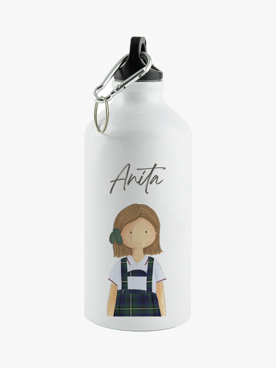 Bidón personalizable con capacidad para 400ml. Modelo Colegio Orvalle Ideal para llevar al colegio, incluye tapón de seguridad con rosca y mosquetón metálico para facilitar su transporte. Presentado en caja individual.