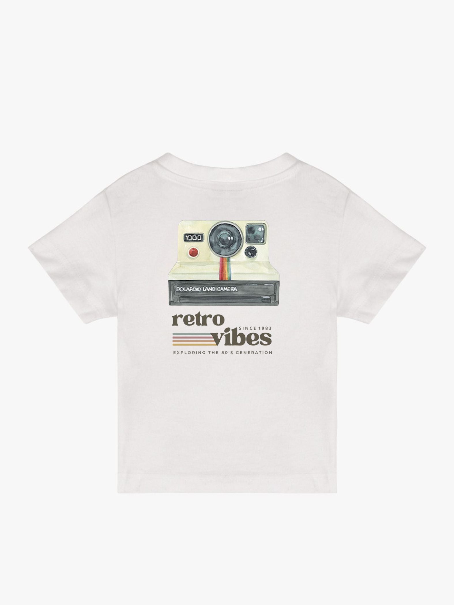 Camiseta de bebé con cuello redondo y manga corta. Diseño Cámara en la parte trasera. Fabricada con algodón orgánico. Es una prenda cómoda y ligera, ideal para los más pequeños de la casa.