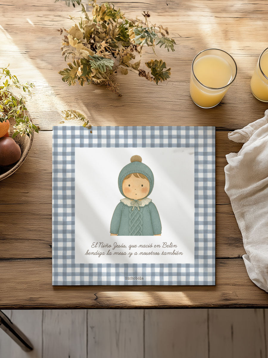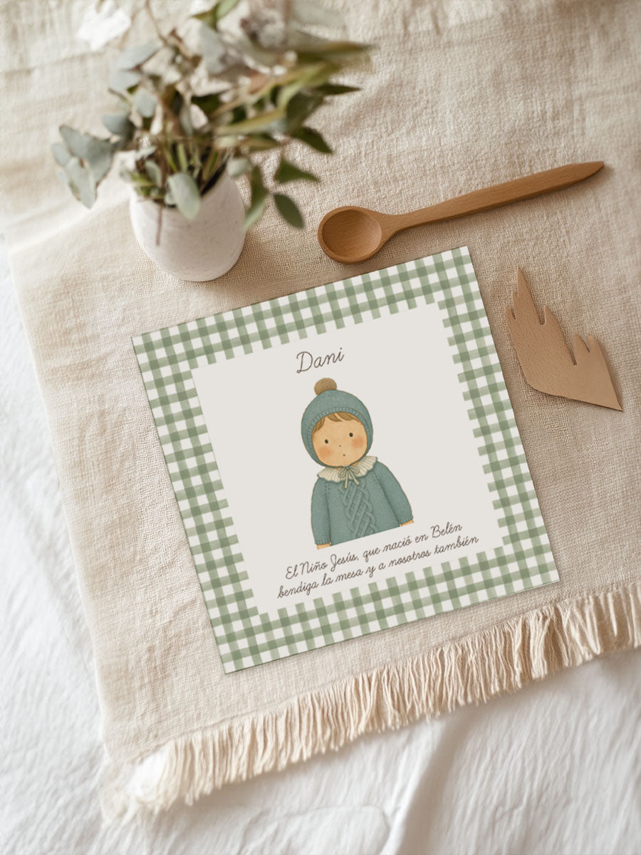 Los manteles individuales son ideales para cualquier mesa familiar, desayuno, comida, merienda o cena. Los puedes personalizar con tu diseño favorito y el nombre. Además, los más pequeños aprenderán poco a poco a bendecir la mesa.