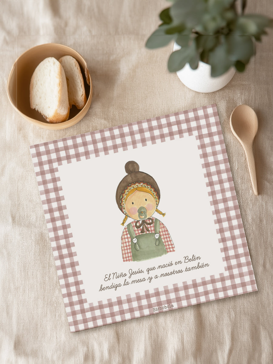 Los manteles individuales son ideales para cualquier mesa familiar, desayuno, comida, merienda o cena. Los puedes personalizar con tu diseño favorito y el nombre. Además, los más pequeños aprenderán poco a poco a bendecir la mesa.