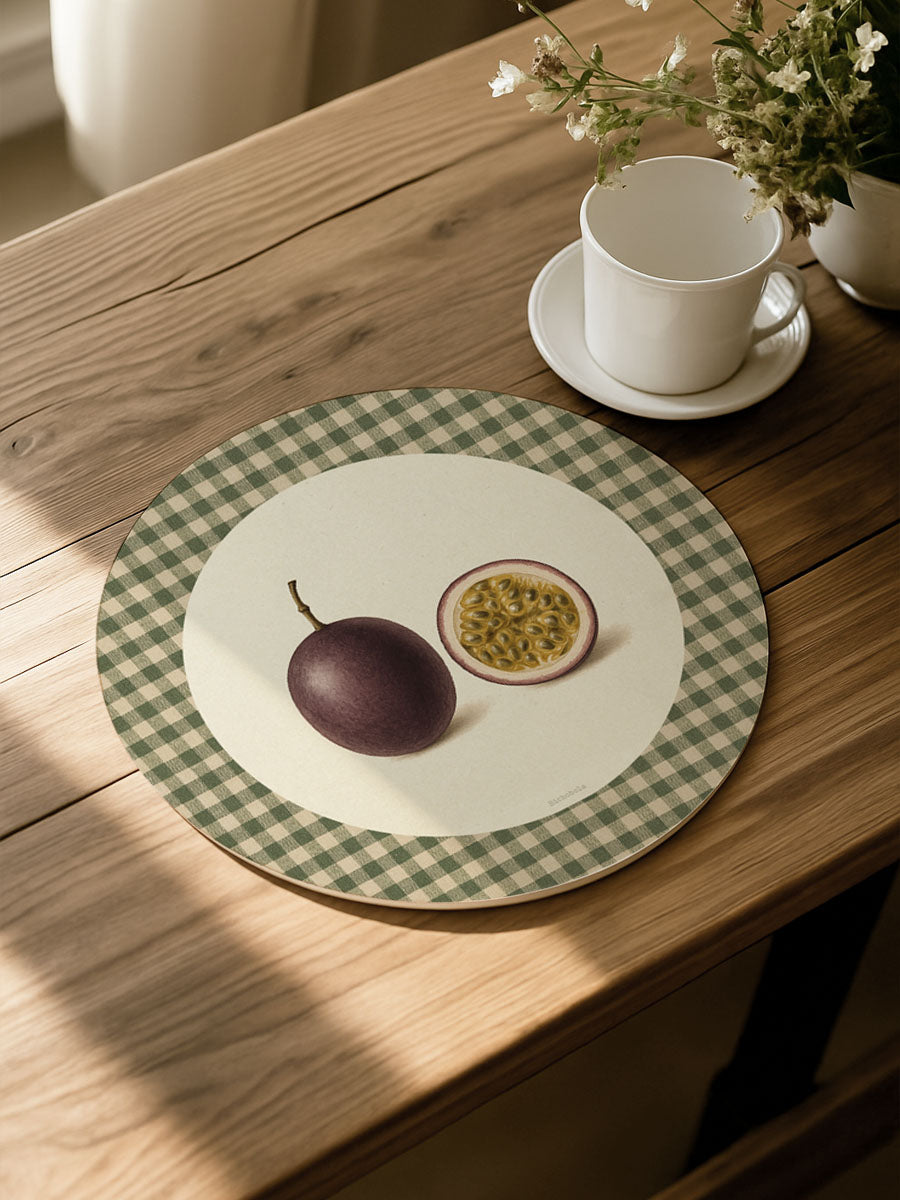 Estos manteles individuales redondos de la colección Frutas y verduras serán el centro de atención de cualquier mesa. Diseñados con un material flexible, resistente y antimanchas.