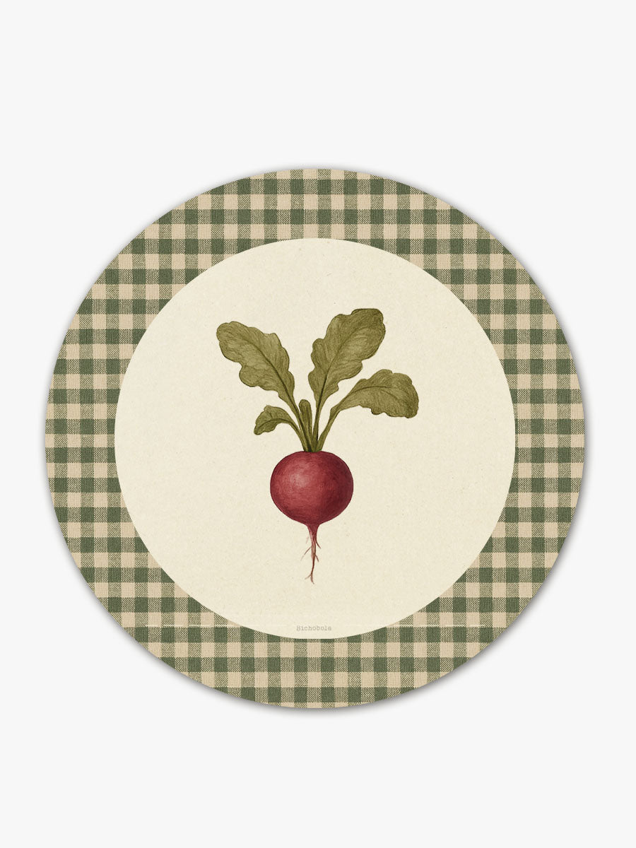 Estos manteles individuales redondos de la colección Frutas y verduras serán el centro de atención de cualquier mesa. Diseñados con un material flexible, resistente y antimanchas.