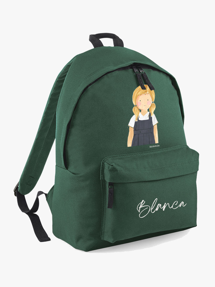 La mochila lona personalizada con el uniforme del colegio San José de Cluny y el diseño de niña que más te guste es ideal para el colegio.