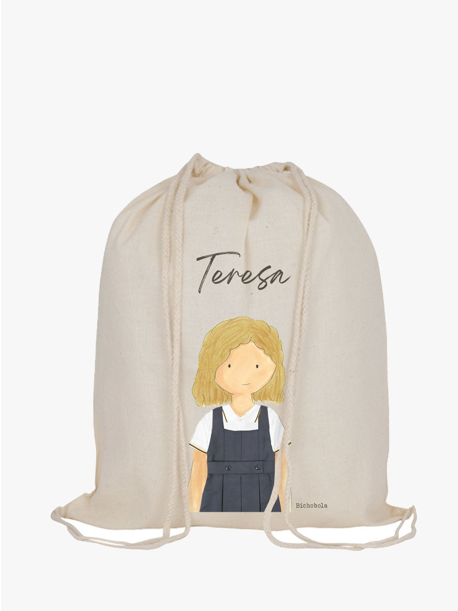 La Mochila de tela con cordones, es un accesorio cómodo y versátil. Nuestros hijos lo podrán usar para llevar sus cosas del cole, ropa de deporte, actividades extraescolares..