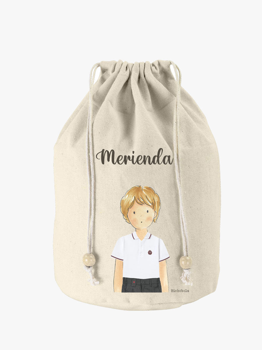 Nuestro saquito de merienda, es ideal para llevar la merienda de una forma organizada y cómoda. Se puede elegir el diseño que más te guste y personalizar con el nombre del niño para que lo tenga siempre localizado. Está fabricado con algodón 100% y se cierra con cuerdas.
