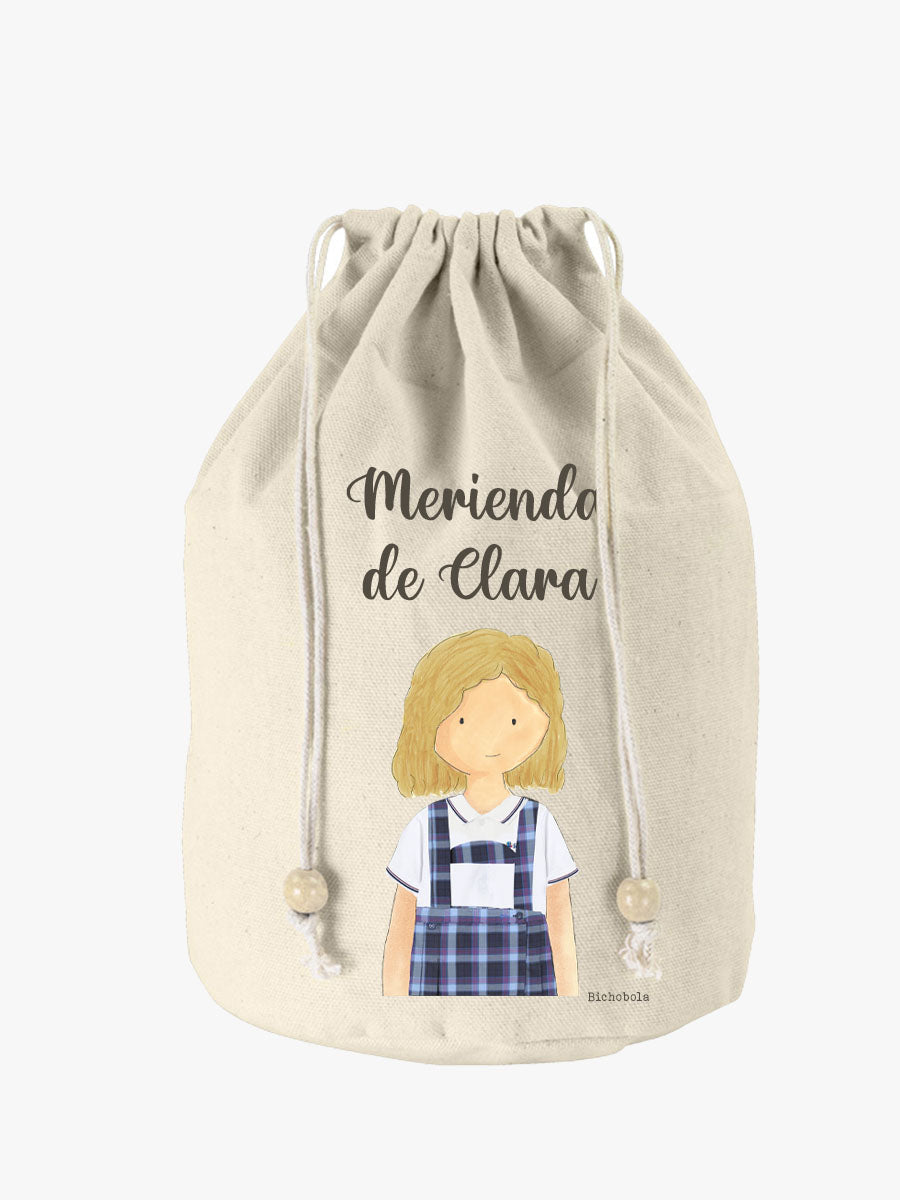 Nuestro saquito de merienda, es ideal para llevar la merienda de una forma organizada y cómoda. Se puede elegir el diseño que más te guste y personalizar con el nombre del niño para que lo tenga siempre localizado. Está fabricado con algodón 100% y se cierra con cuerdas.