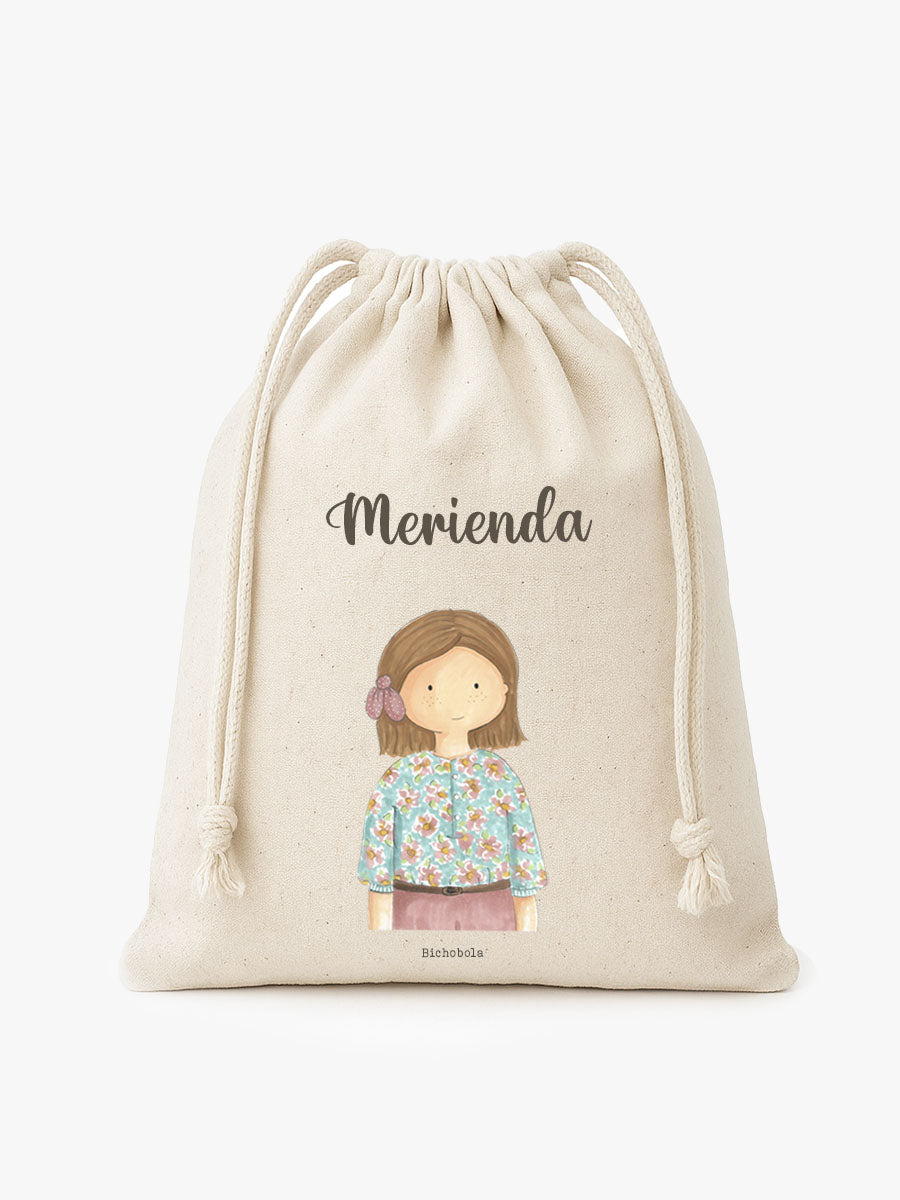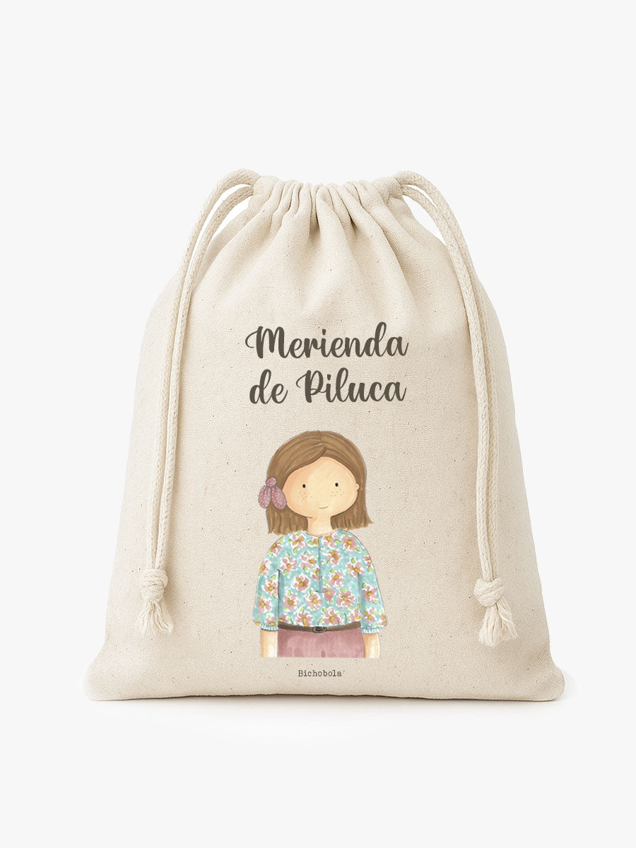 Nuestro saquito de merienda, es ideal para que los niños puedan llevar la merienda del colegio de una forma organizada y cómoda. Se puede elegir el diseño que más te guste y personalizar con el nombre del niño para que lo tenga siempre localizado. Está fabricado con algodón 100% y se cierra con cuerdas.
