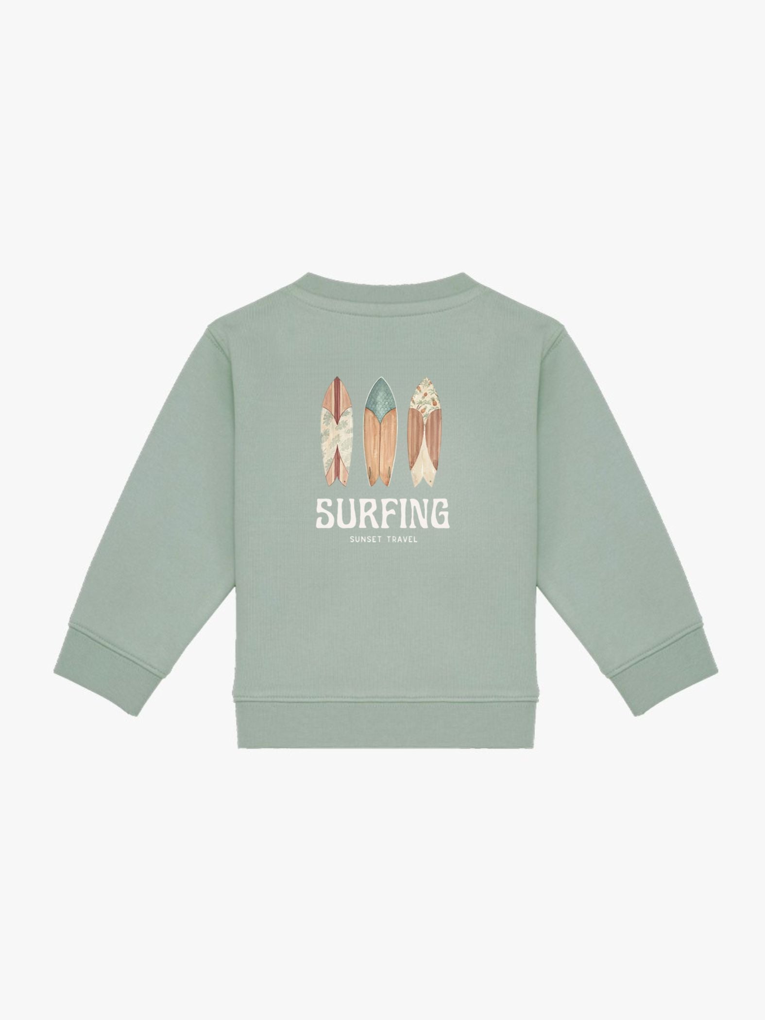 Sudadera de bebé con cuello redondo y diseño Bultaco en la parte trasera. Fabricada con algodón orgánico. Es una prenda cómoda y suave, ideal para los más pequeños de la casa.